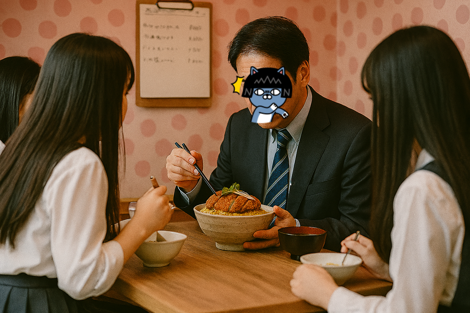 긴 머리 일본 여고생에 둘러싸여 가츠동을 먹는 귀중한 체험을 했다.