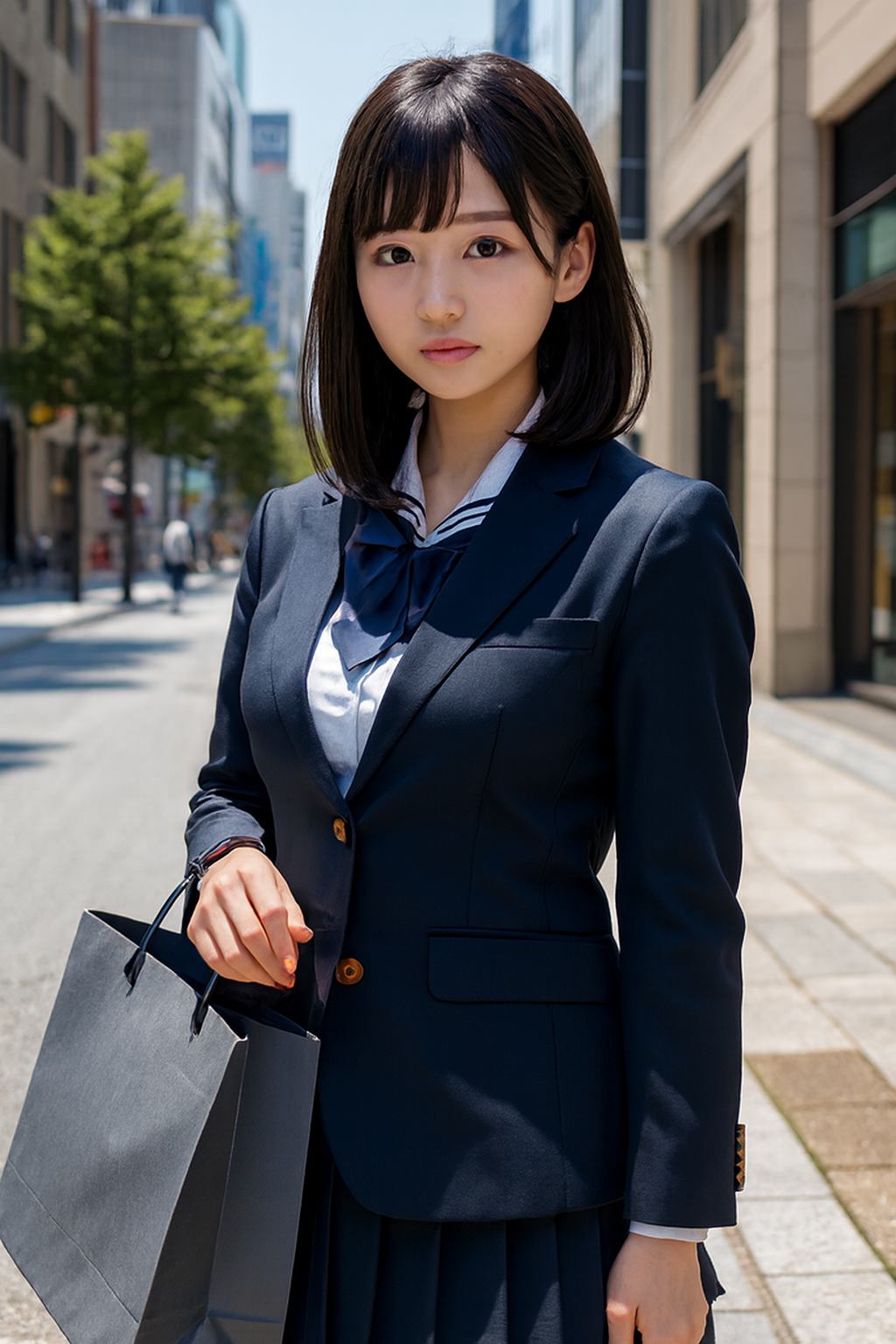 국립임에도 귀족적 이미지가 강한 학교입니다. 교복은 블레이저 스타일로, 짙은 네이비 자켓과 체크무늬 스커트가 기본입니다. 가격은 약 7만~9만 엔이며, 학교 지정 업체에서만 구매 가능합니다. 일반인은 접근 불가합니다.