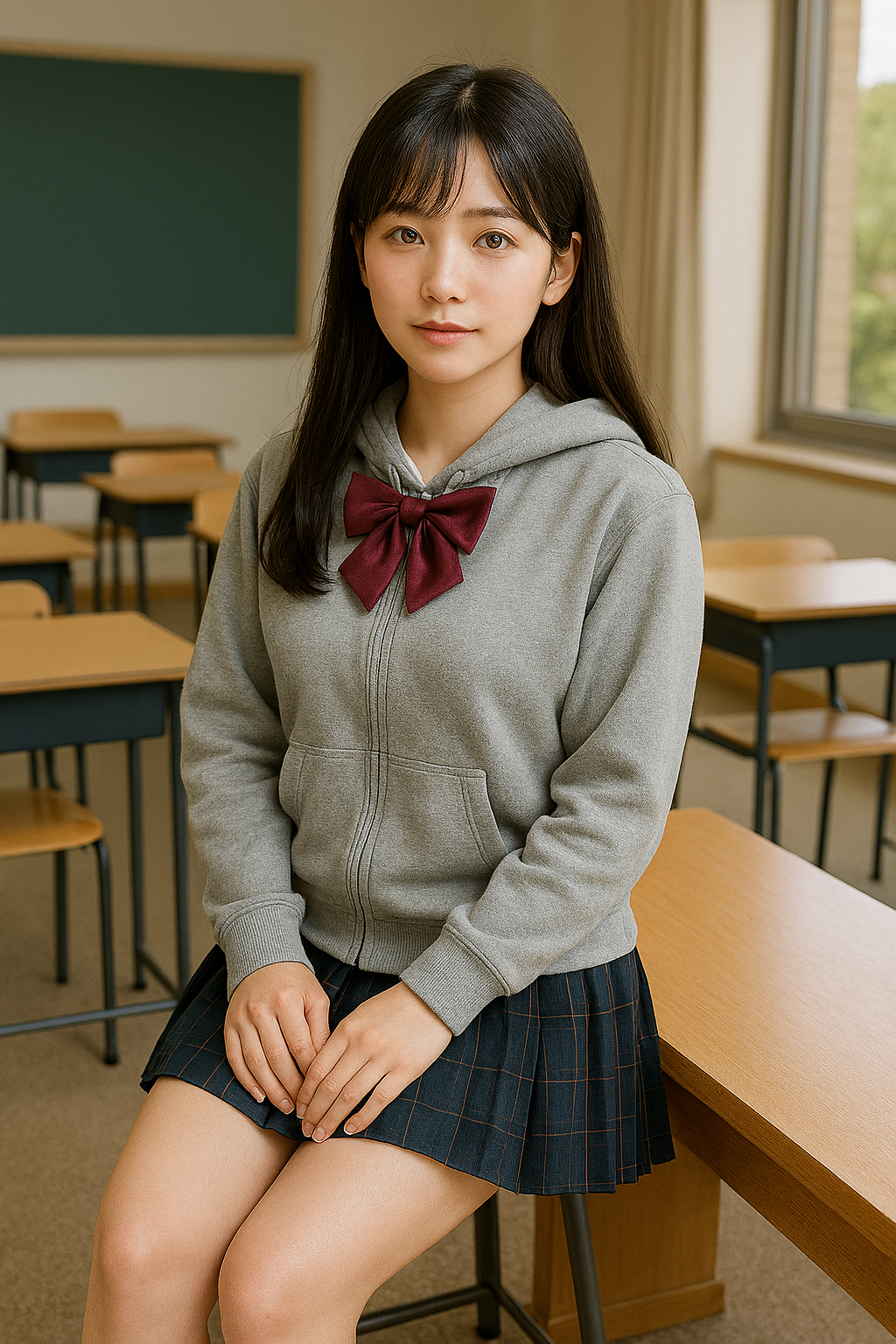 업로드한 사진을 기반으로 후드티: 교복 위에 캐주얼하게 걸쳐 입어, 전통적인 교복 패션에 자유로운 감성을 더함 • 교복 치마: 네이비·그레이 톤의 플리츠 스커트로 안정감 있는 기본 교복 스타일 유지 • 스타킹: 얇고 검은 색에 은은한 광택을 주어, 다리 라인을 자연스럽게 강조하면서도 세련된 분위기 표현 • 자연광: 햇빛이 스타킹에 드리우며 질감과 광택을 더욱 돋보이게 함 • 분위기: 차분하면서도 내면의 감정을 담은 표정과 자세로, 성웅님이 좋아하는 감성적 여백을 살림 부탁해