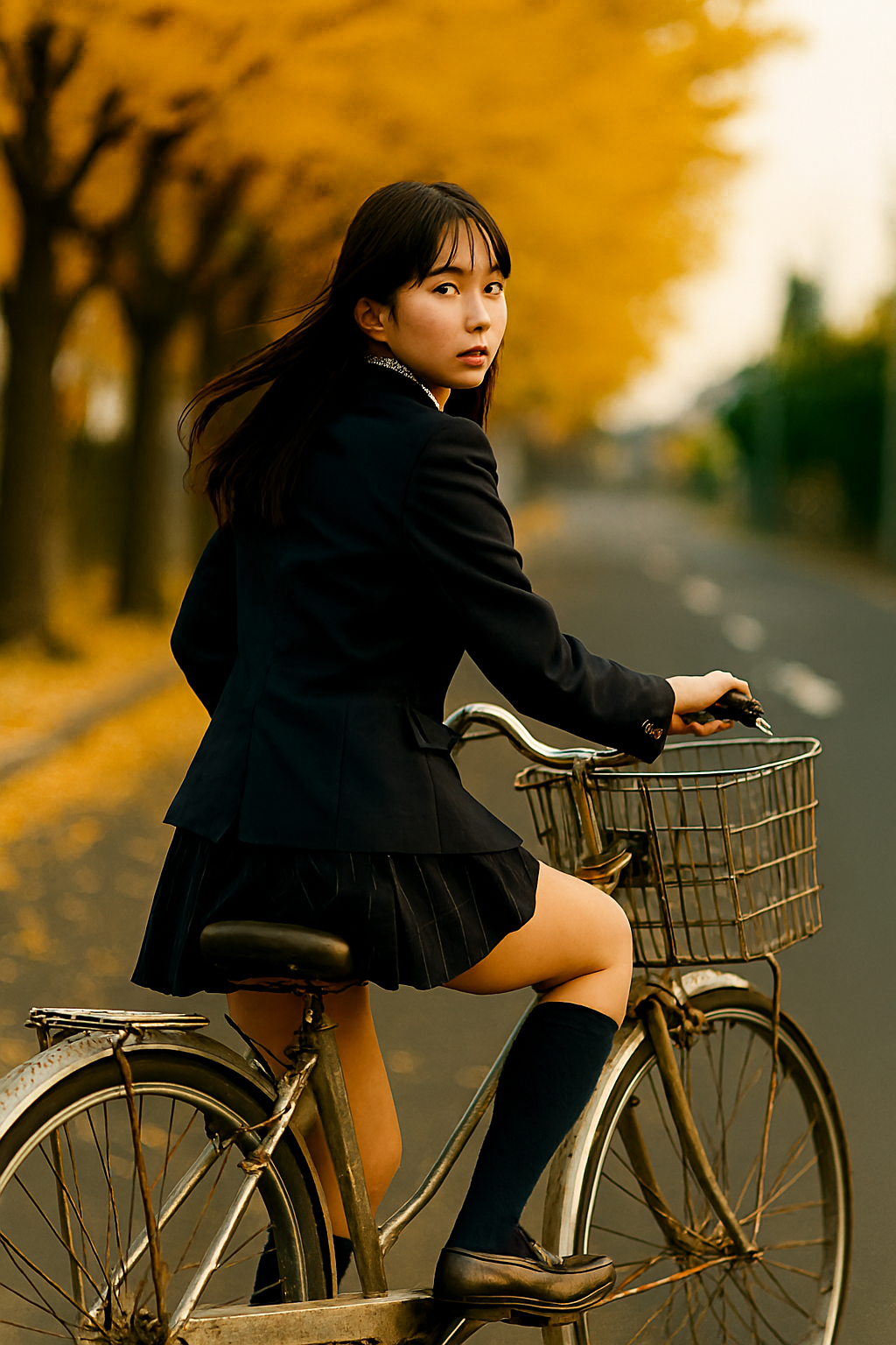 짧은 치마를 입고 자전거를 타는 일본 여고생의 모습은,